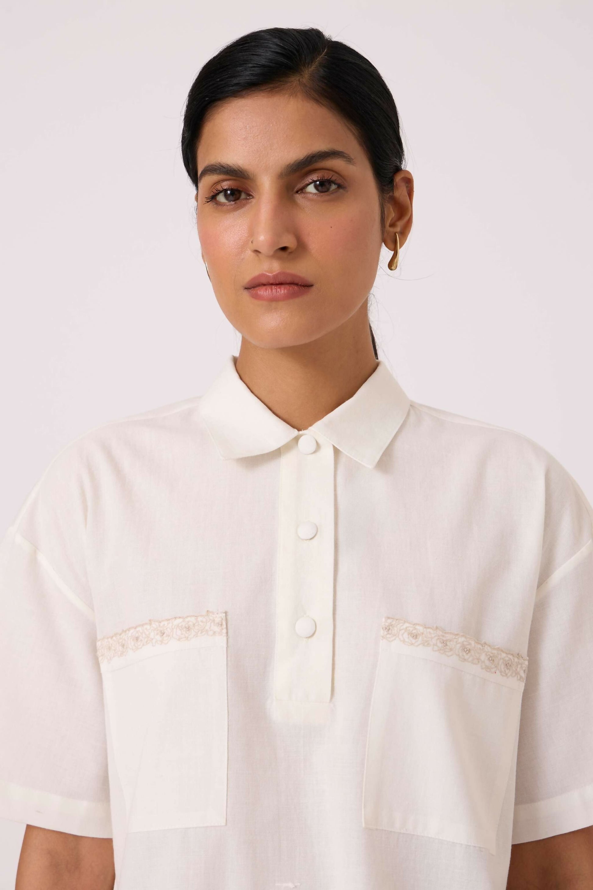 Discover the Alyosha, a beautifully crafted handwoven cotton shirt featuring a smart boxy fit and elbow-length sleeves. The standout embroidered patch pocket adds artisanal charm, with each piece uniquely hand-embroidered in our studio. The front partial button placket offers effortless styling versatility. Ethically made in India from premium handwoven cotton, this shirt celebrates traditional craftsmanship. Care for its delicate details with gentle hand washing—each variation in embroidery tells the story of its handmade creation.