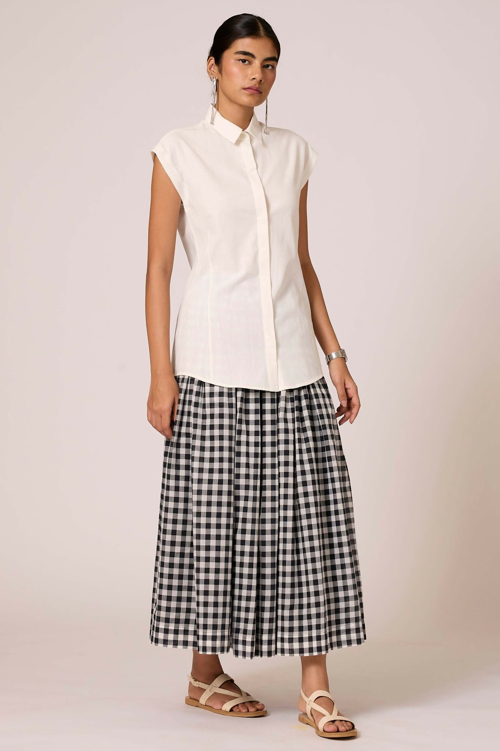 The Cicaro Shirt in Blanc combines timeless elegance with artisanal craftsmanship. Tailored with a flattering slim fit and graceful drop sleeves, this piece features carefully placed long line darts that sculpt and define your silhouette. Crafted from handspun and handwoven cotton, each shirt carries the authentic character of traditional textile techniques. Ethically produced in India, it's designed for conscious style. Care for your Cicaro with a gentle machine wash using mild detergent to preserve its quality and beauty for years to come.
